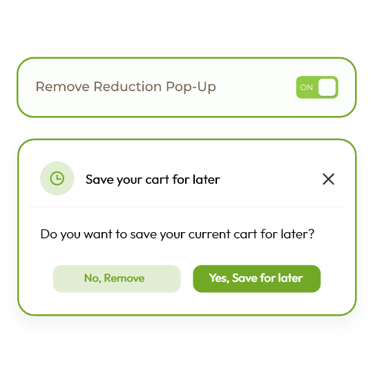 Pop-up Prevents Removal from Cart and Invites to Add to Next Shopping Cart